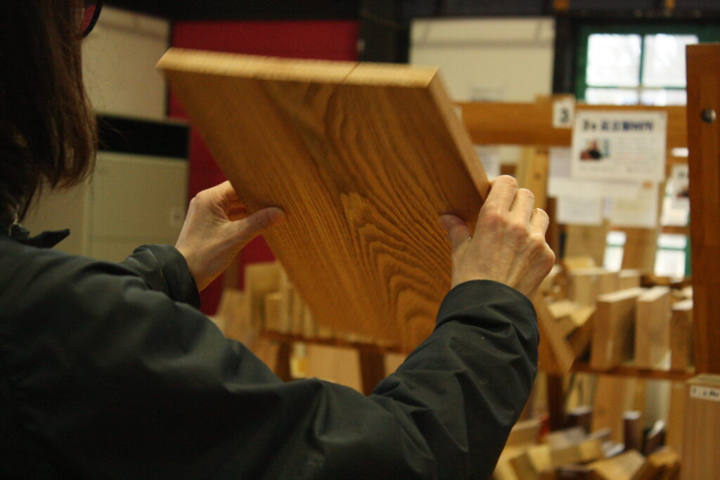 今回の教室は座面に使う板を選んで自分で購入するところから始まります。完成像を思い描きながらの材料選びはワクワクしますね。ただ選ぶだけでなくしっかりとサイズ感や厚み、重さ、反り加減を確認しベンチに向いているか吟味して選びます。
