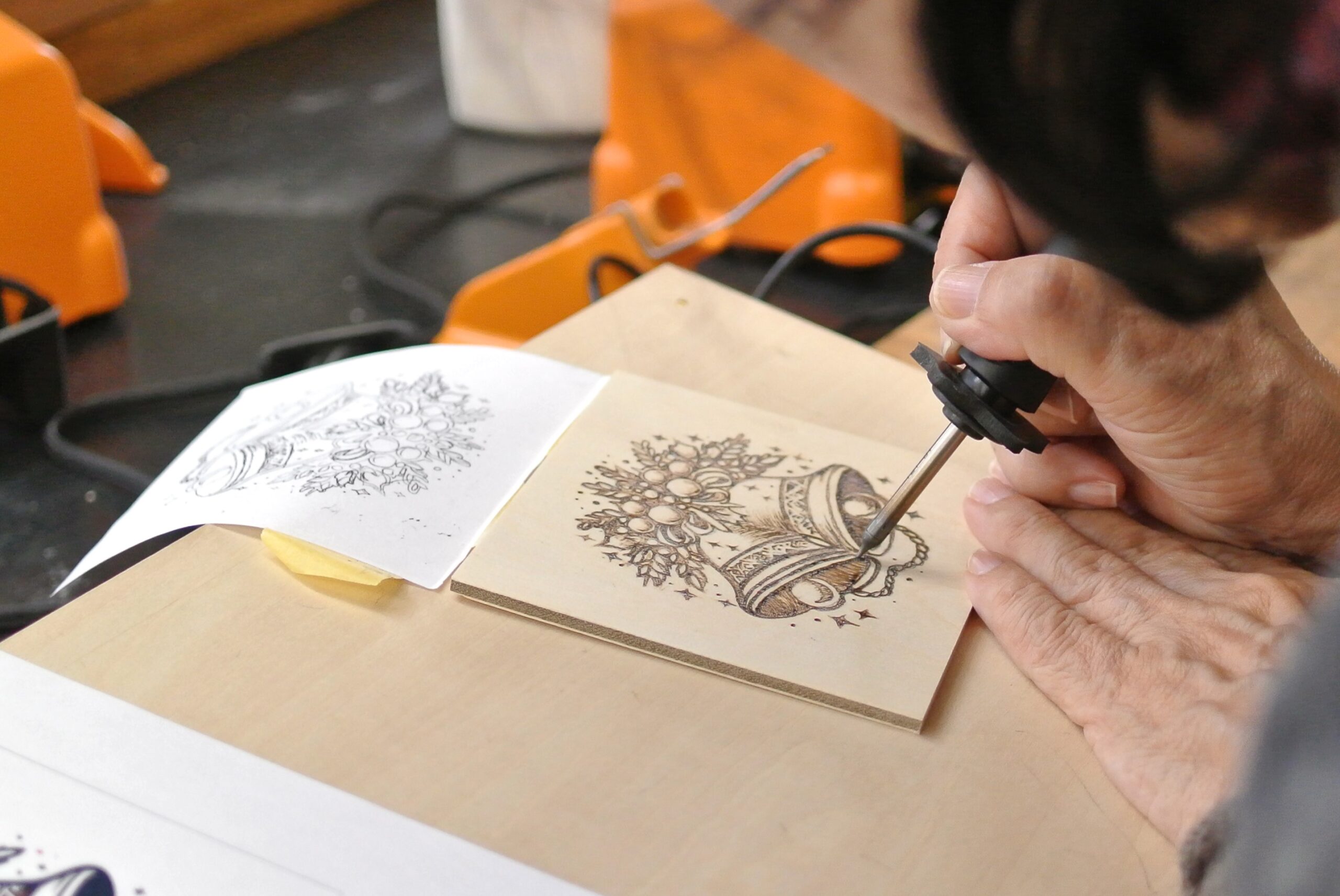 使用機材:バーニングペン(マイペンアルファ)、カンナ等