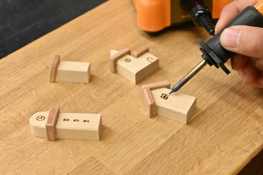 バーナーで木をあぶったり、木に窓やドアを描いたり、いろんな木工作をしてみましょう!