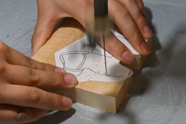 電動糸鋸盤を使用してうまの形を切り抜いて、門松などの装飾も作ります🎍