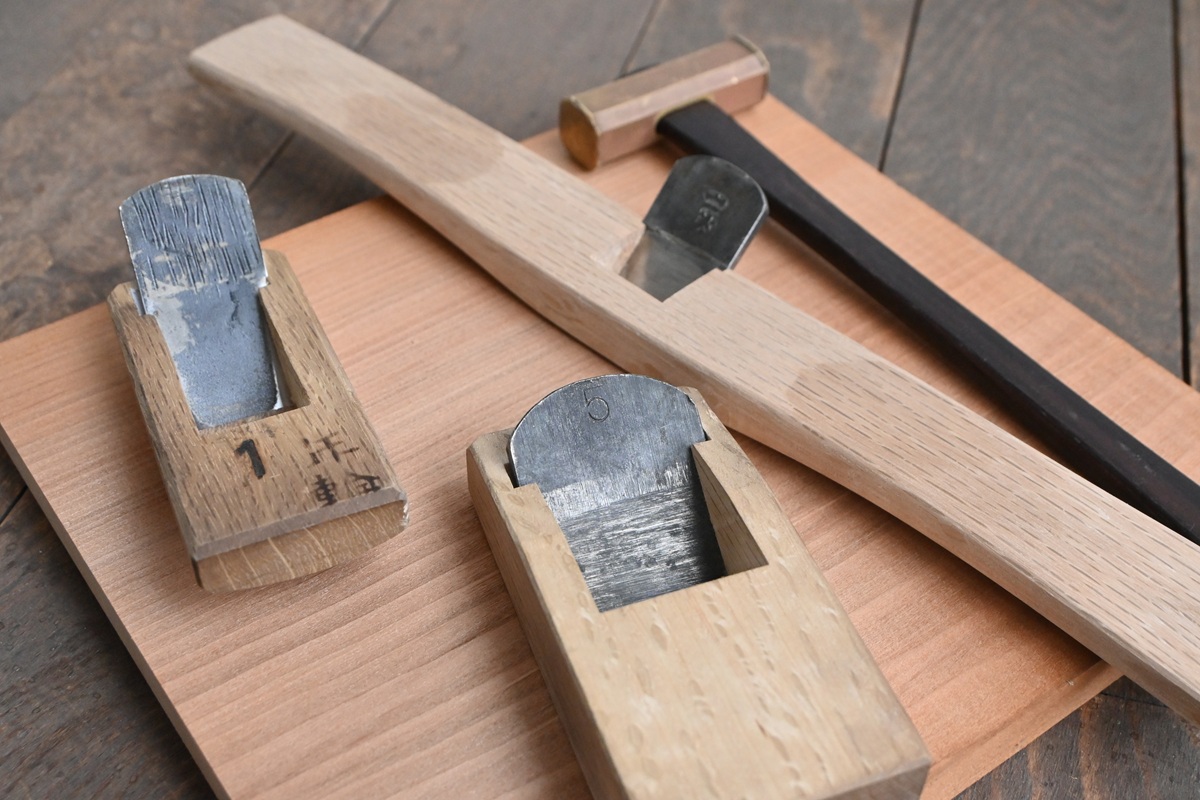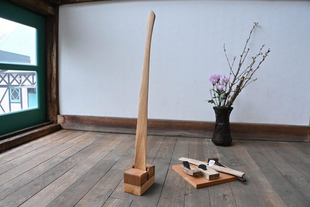 曲線を削るための鉋を使って立ったままでも使いやすい靴べらを作る教室を開催します。